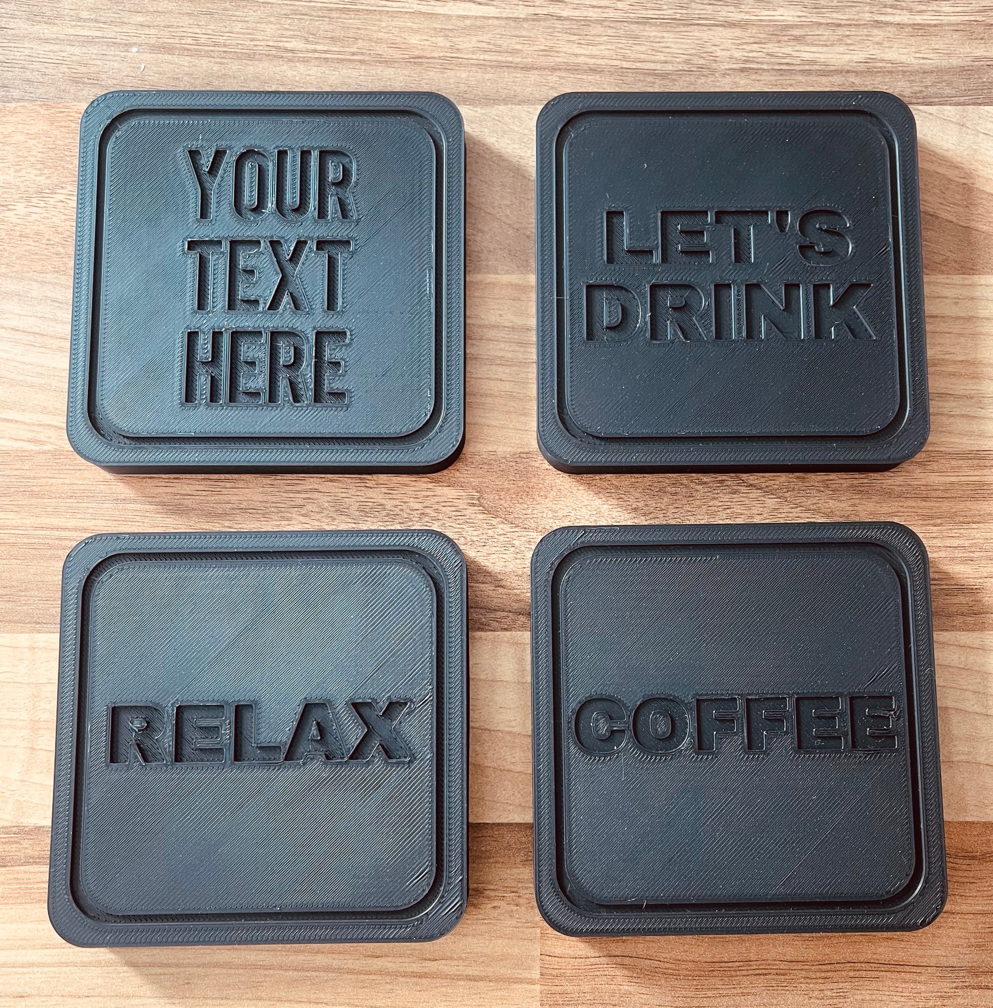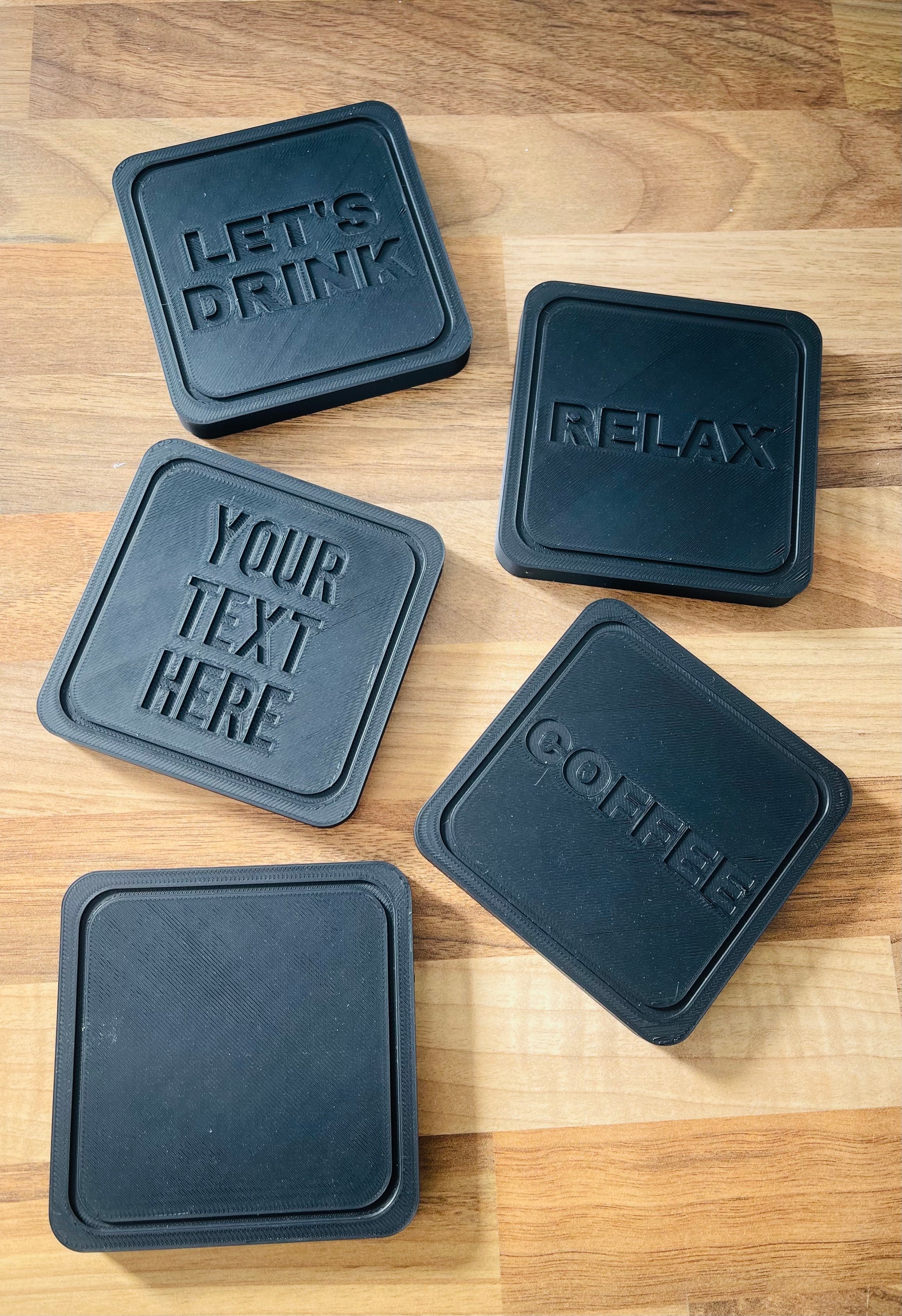 Personalised 3D Printed Coaster Set – Custom Text, Square Drinks Coasters, Modern Minimal Design, Gift for Home, Bar, or Office