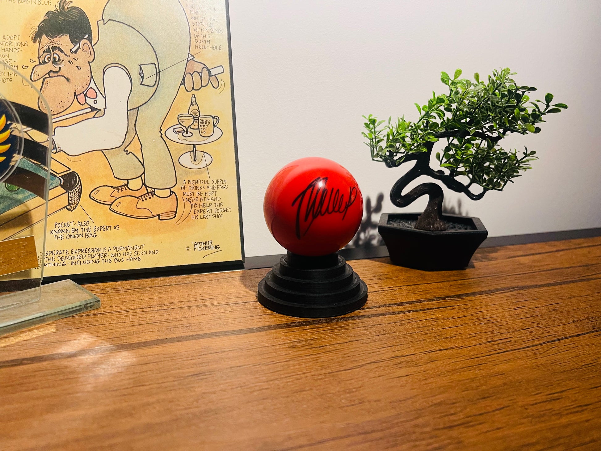 Display your signed snooker balls in style with this elegant stand. Perfect for any game room or man cave, this snooker ball stand is a must-have accessory for billiards enthusiasts. Keep your pool table organized and add a touch of sophistication to your decor with this practical and stylish cue ball holder.