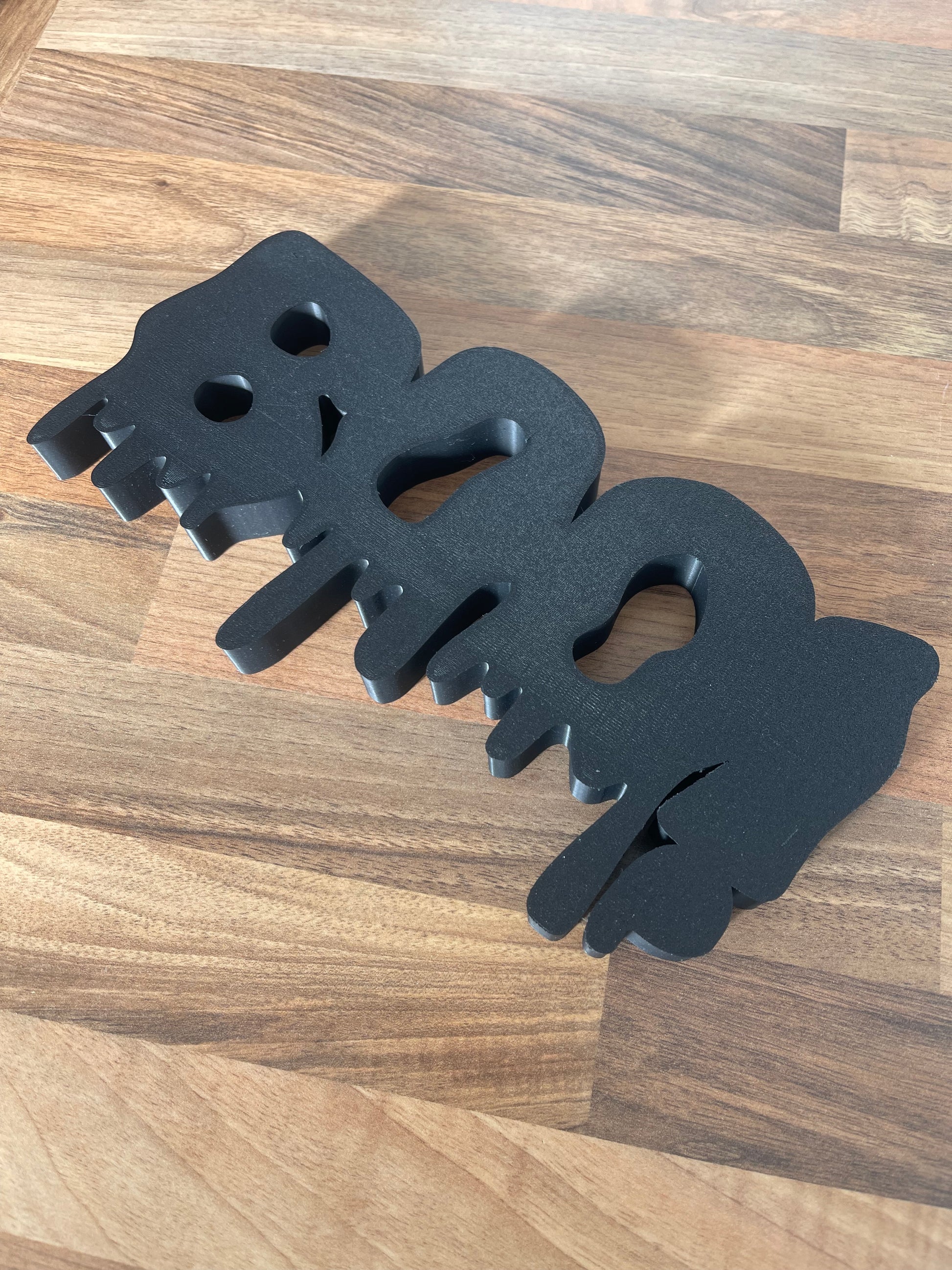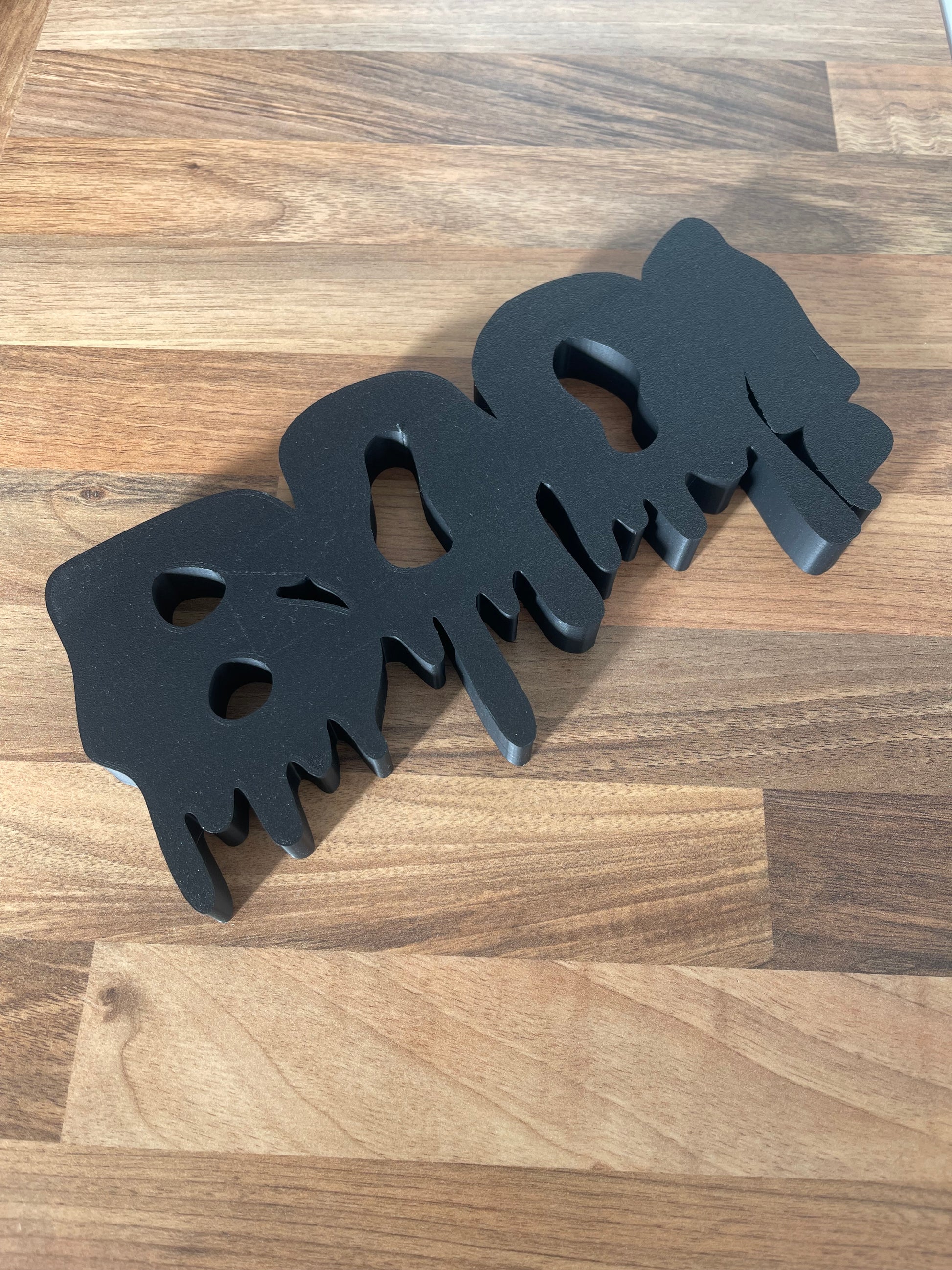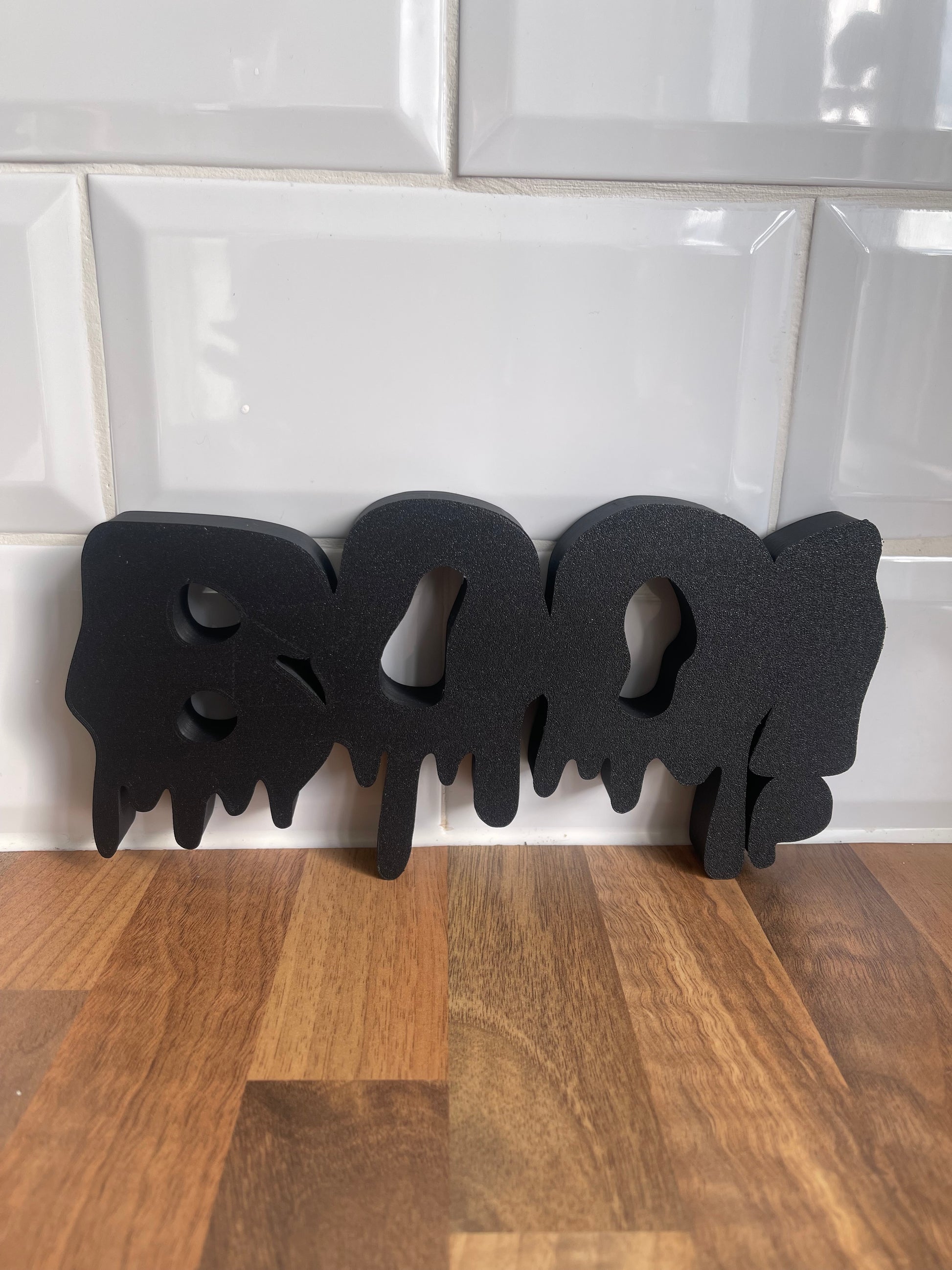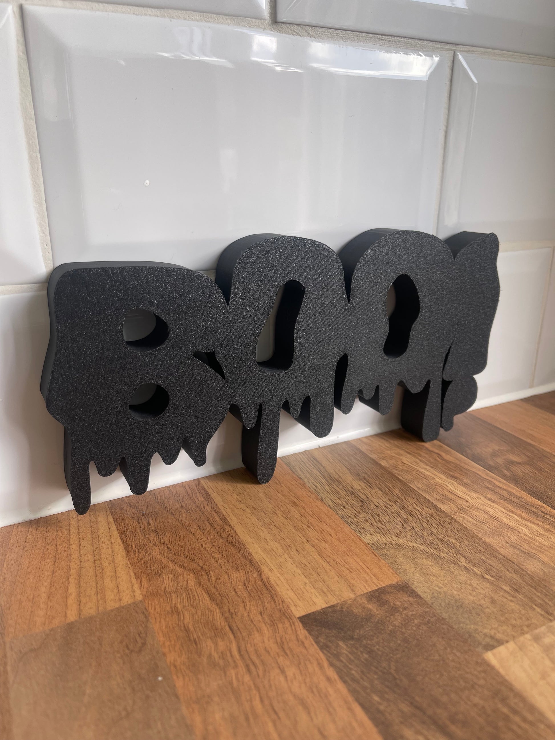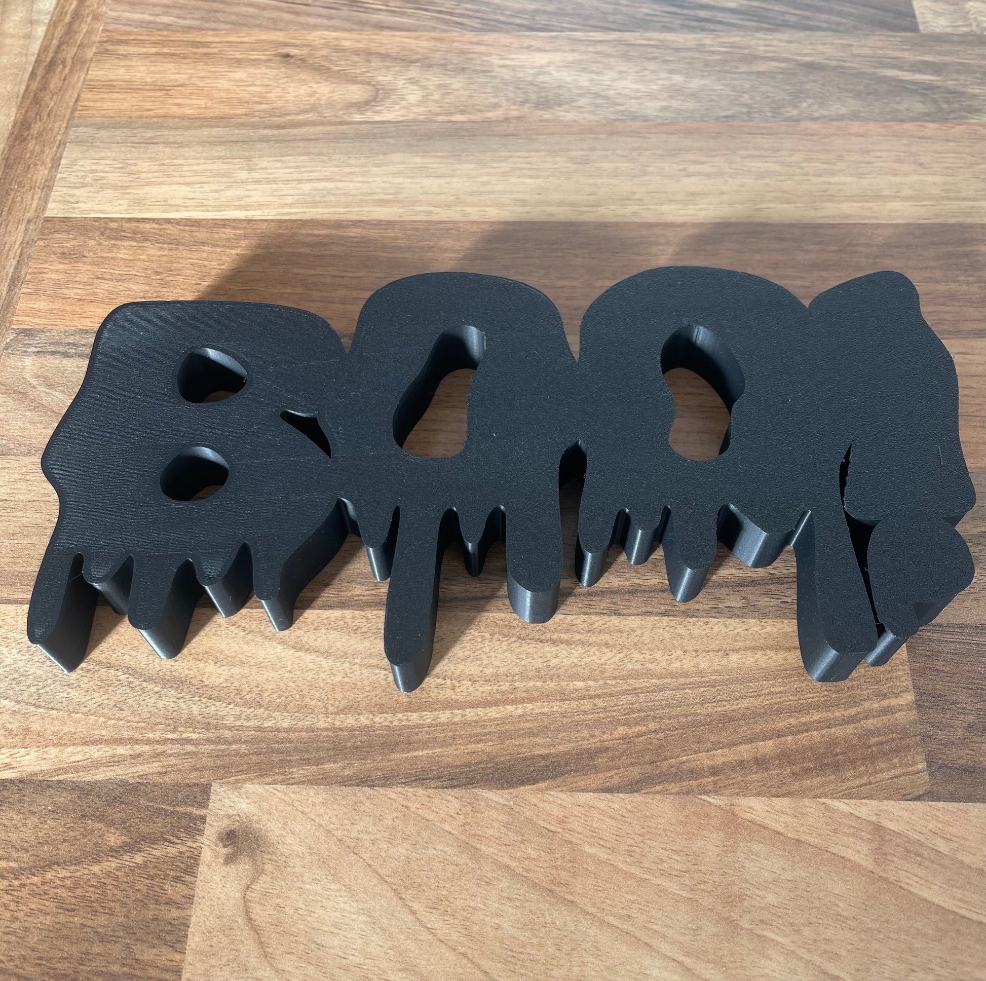 • 3D printed BOO! sign with a dripping letters design