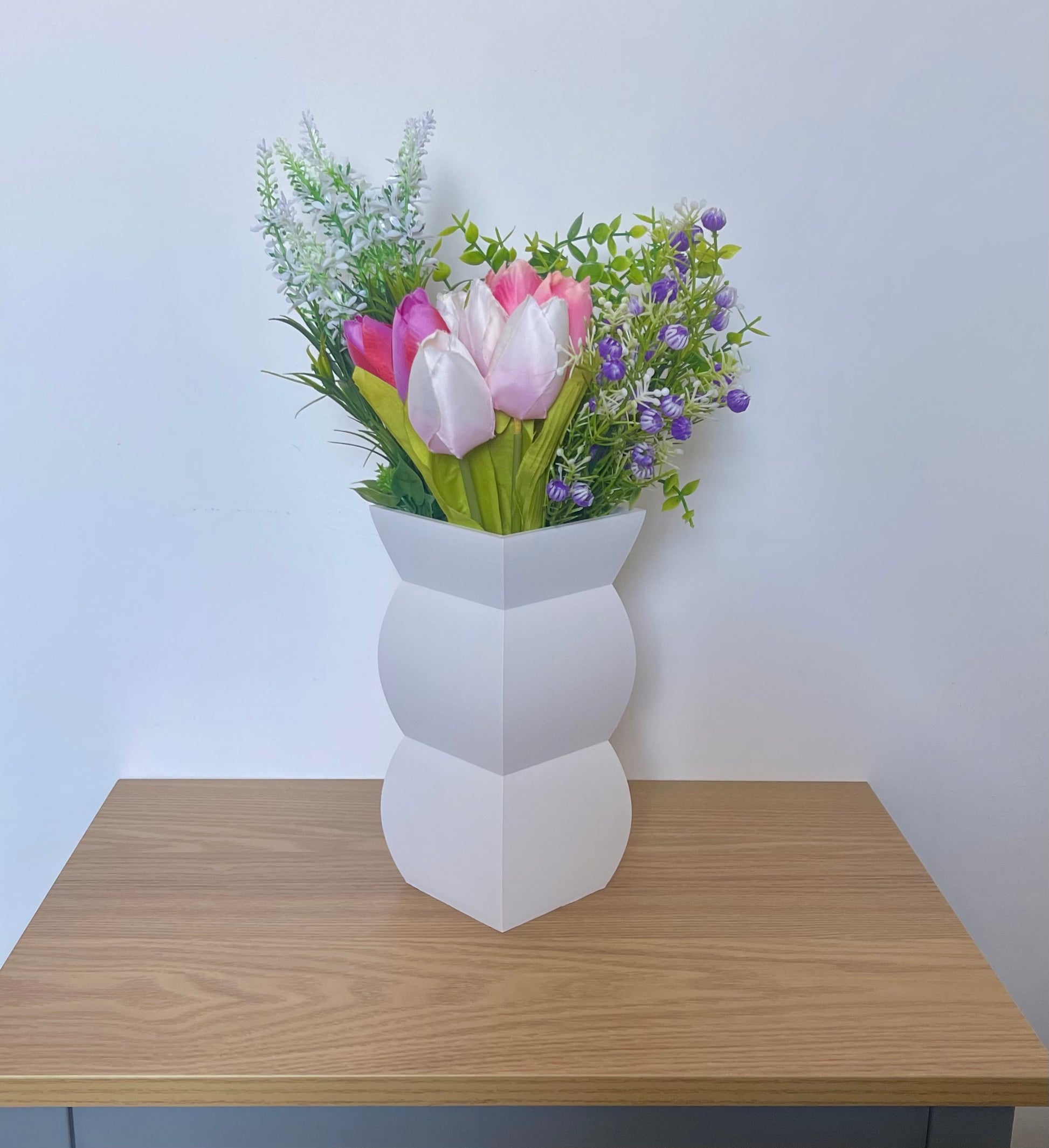 Crafted from high-quality, eco-friendly PLA filament, this vase is lightweight, durable, and made to order. The design’s wide opening makes it ideal for faux flower arrangements (not recommended for use with water or real plants), adding a stylish focal point to your décor.