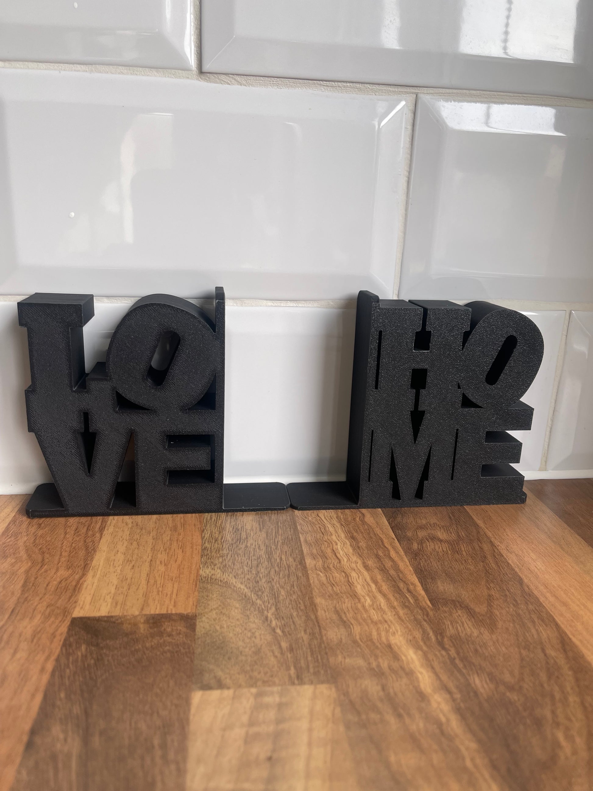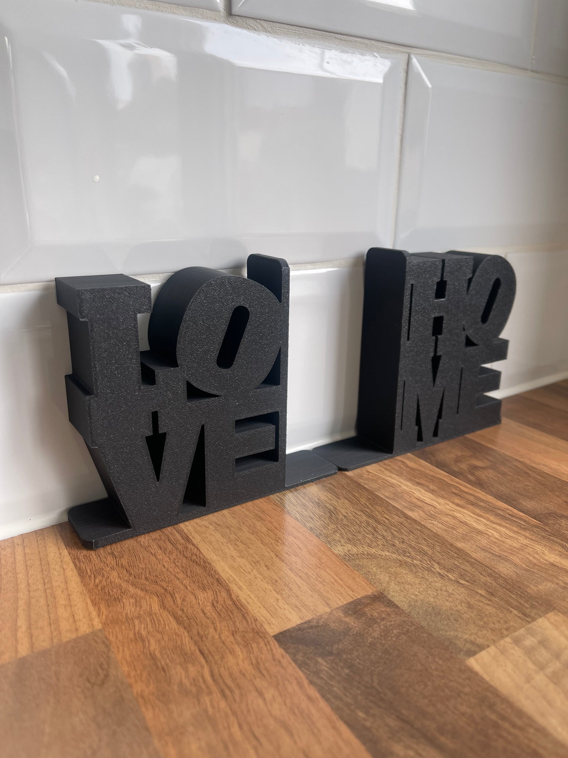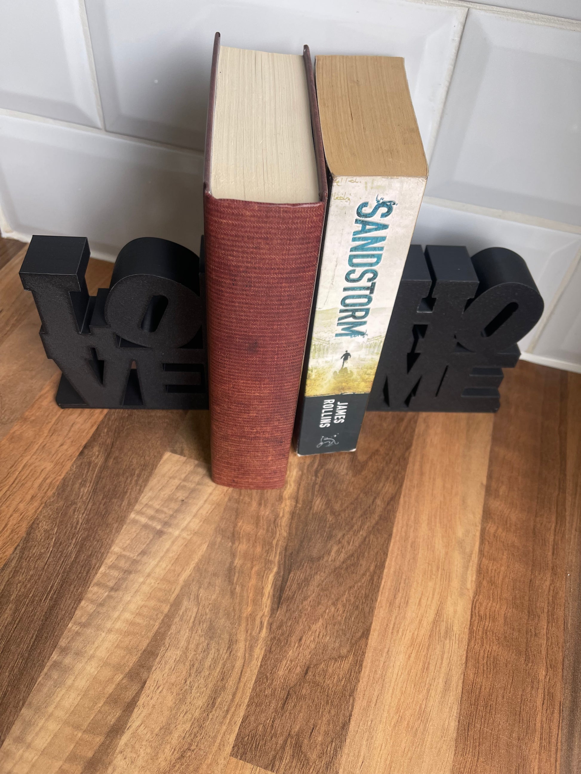 Thick Love Home Bookends With Slide Under Book Tab, Decorative 3Dprinted Bookstands sign, Neat Sturdy Book Support For Bookshelf, Home Gift