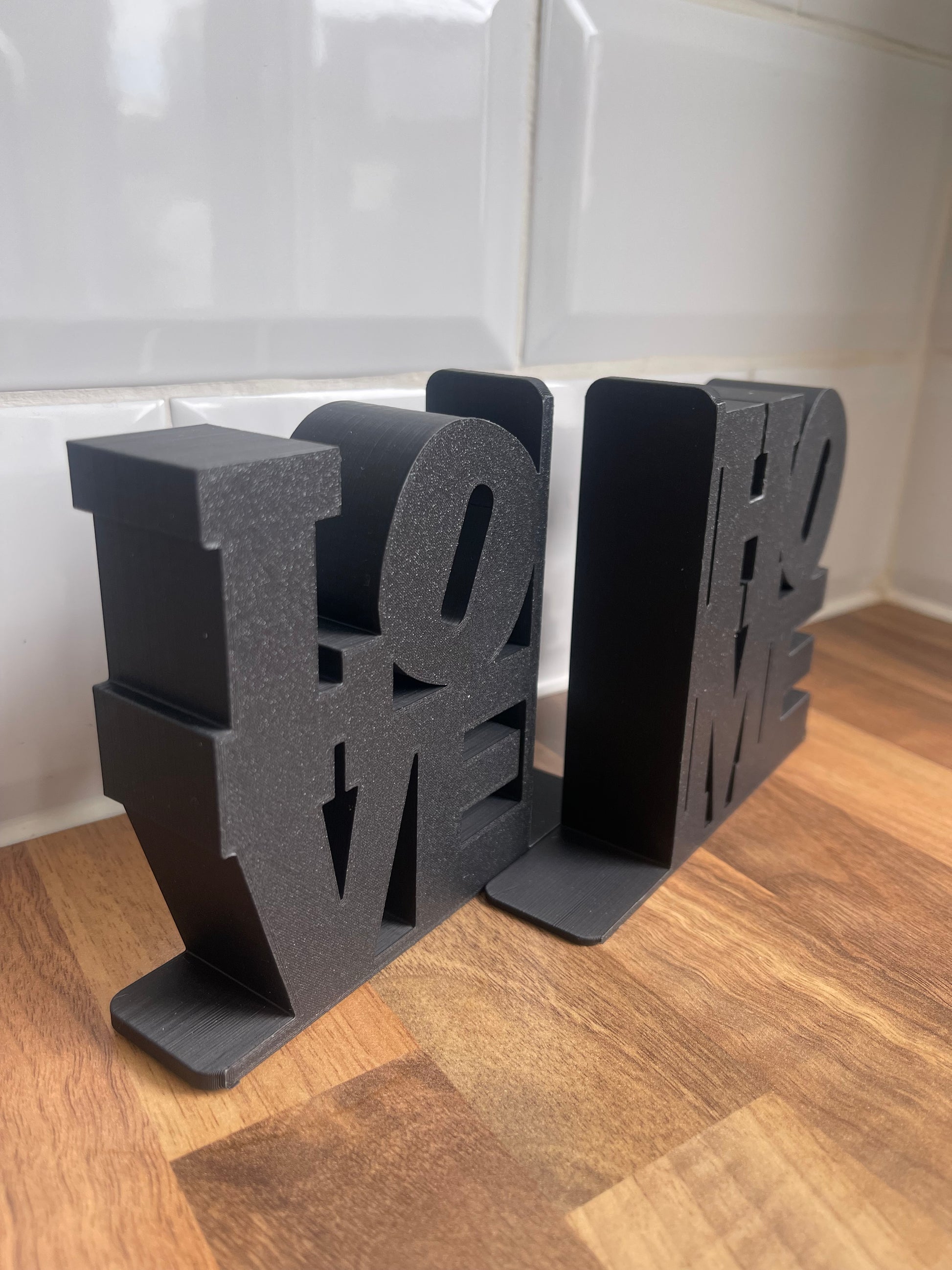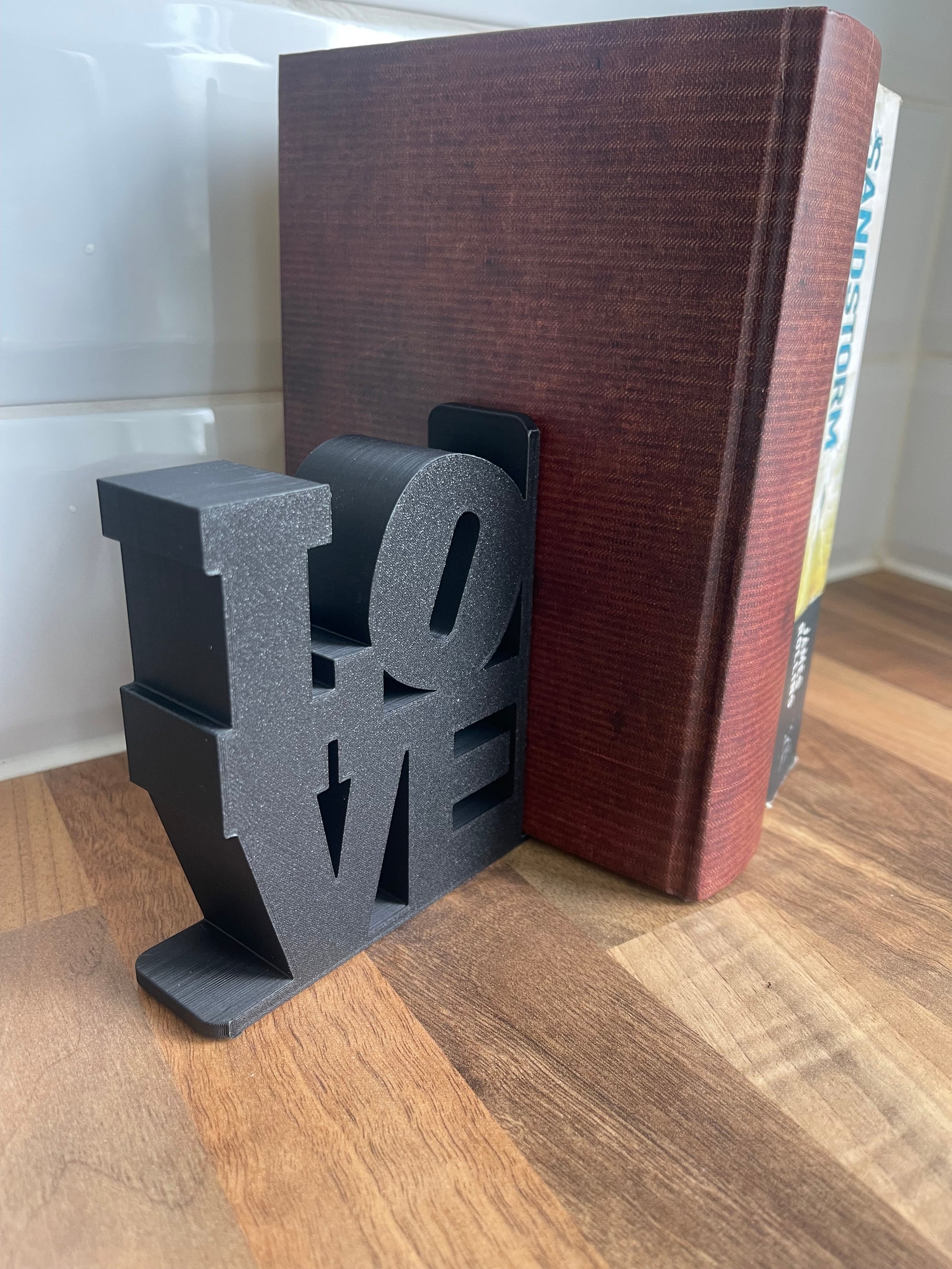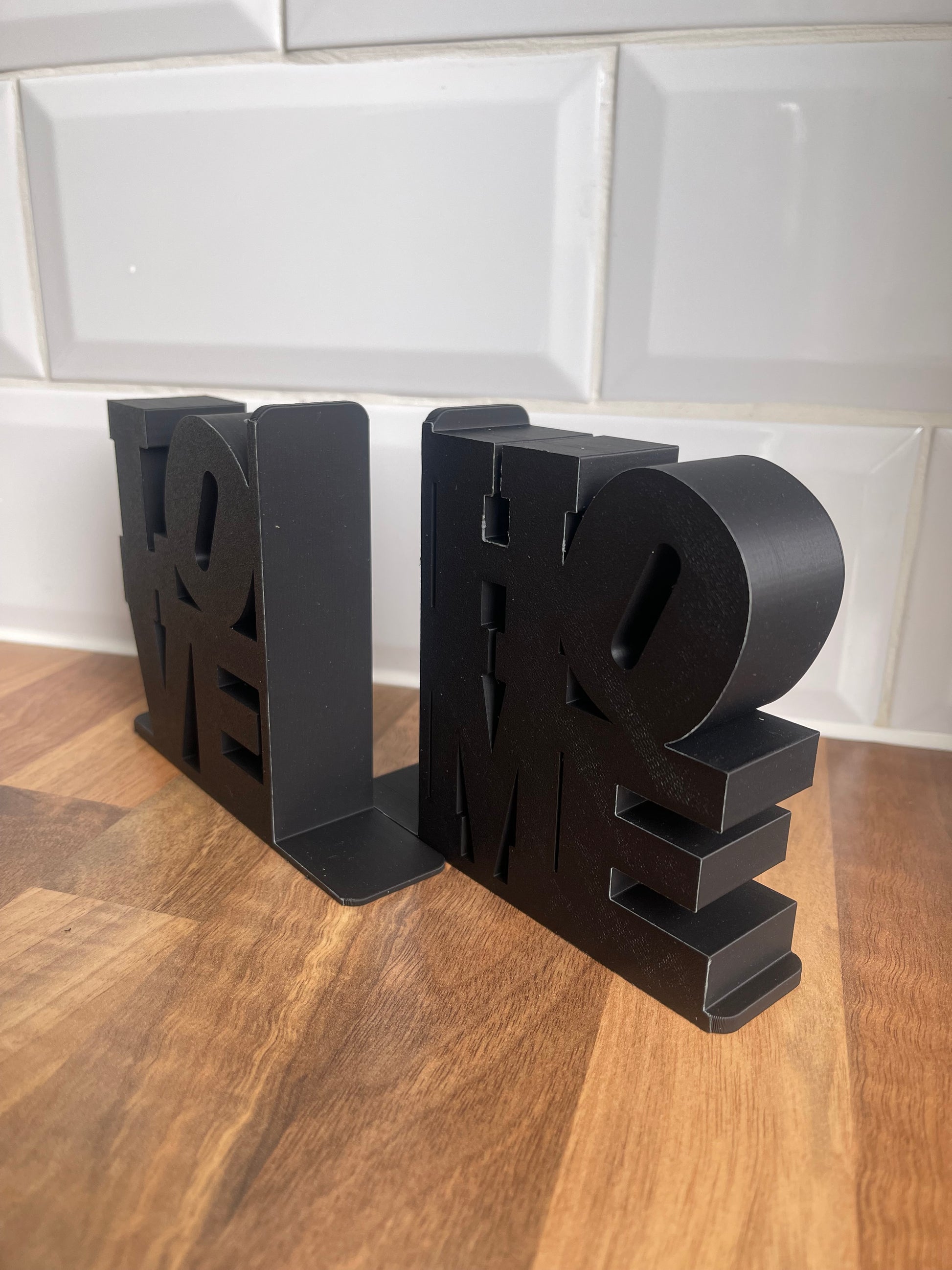 Thick Love Home Bookends With Slide Under Book Tab, Decorative 3Dprinted Bookstands sign, Neat Sturdy Book Support For Bookshelf, Home Gift
